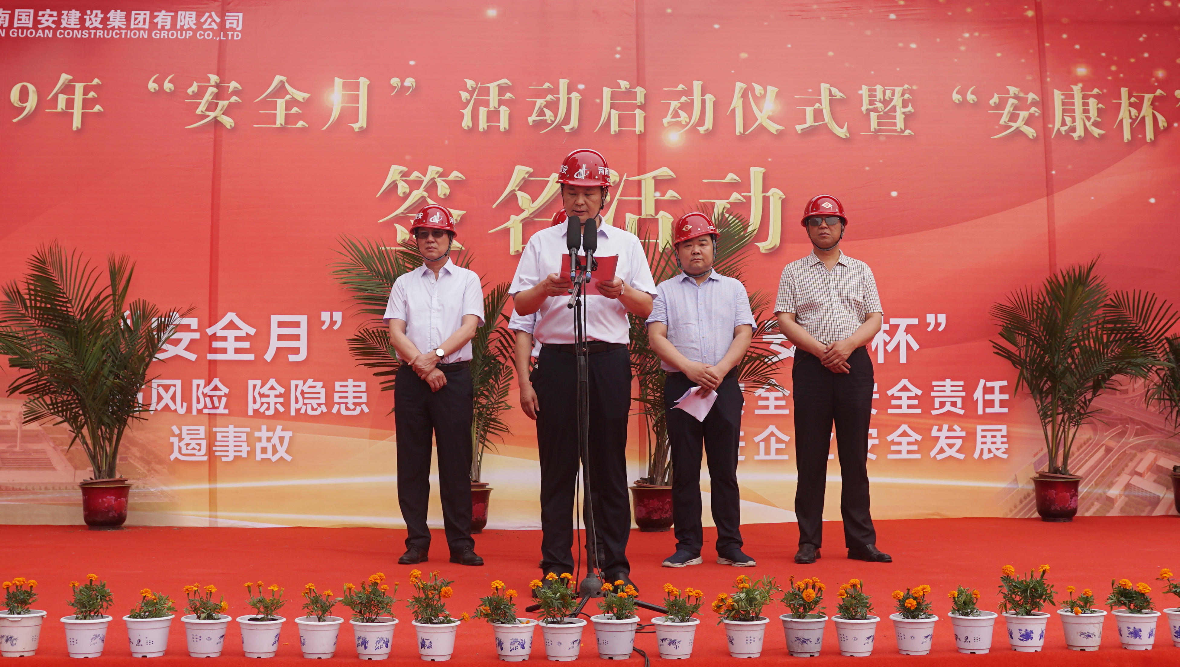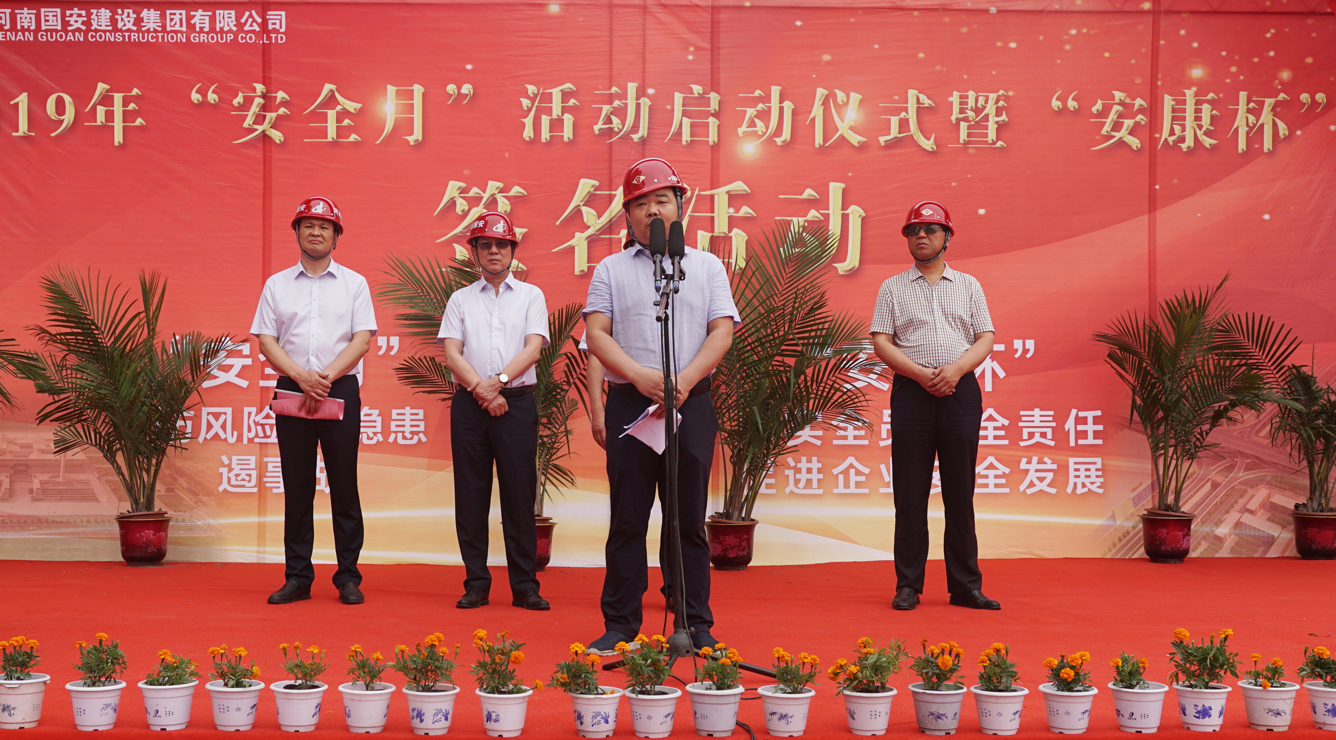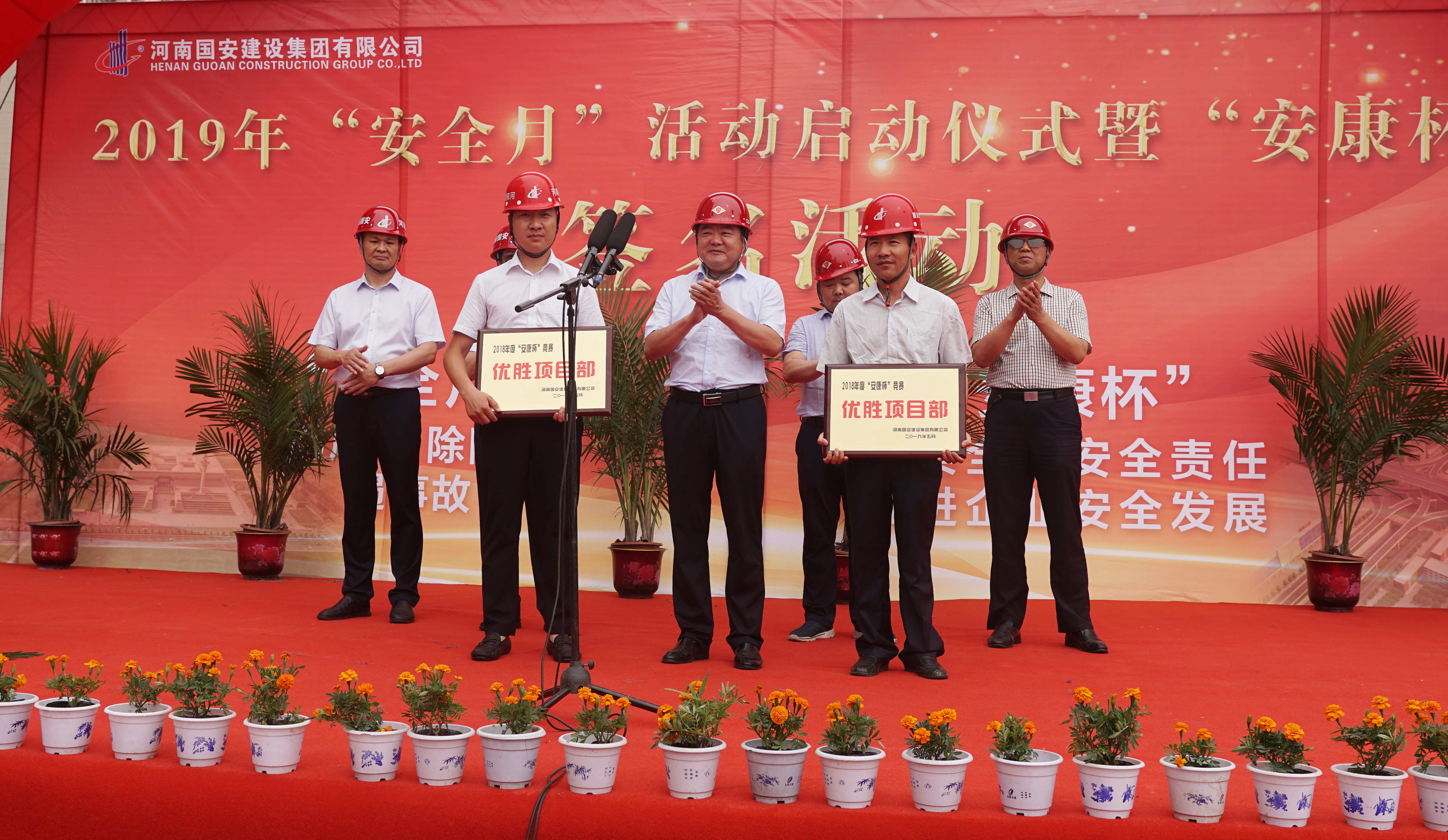 活動現(xiàn)場,市住建局安監(jiān)站站長劉現(xiàn)京和集團公司總經(jīng)理韓松峰分別作出重要講話,王城大道項目經(jīng)理王博對項目情況及安全管理工作進行發(fā)言,各級領(lǐng)導(dǎo)分別對在2018年度“安康杯”競賽活動中取得優(yōu)勝成績的單位和先進個人進行了表彰,最后,市應(yīng)急管理局副局長馬懷慶宣布國安建設(shè)集團2019年“安全生產(chǎn)月”活動正式開始。